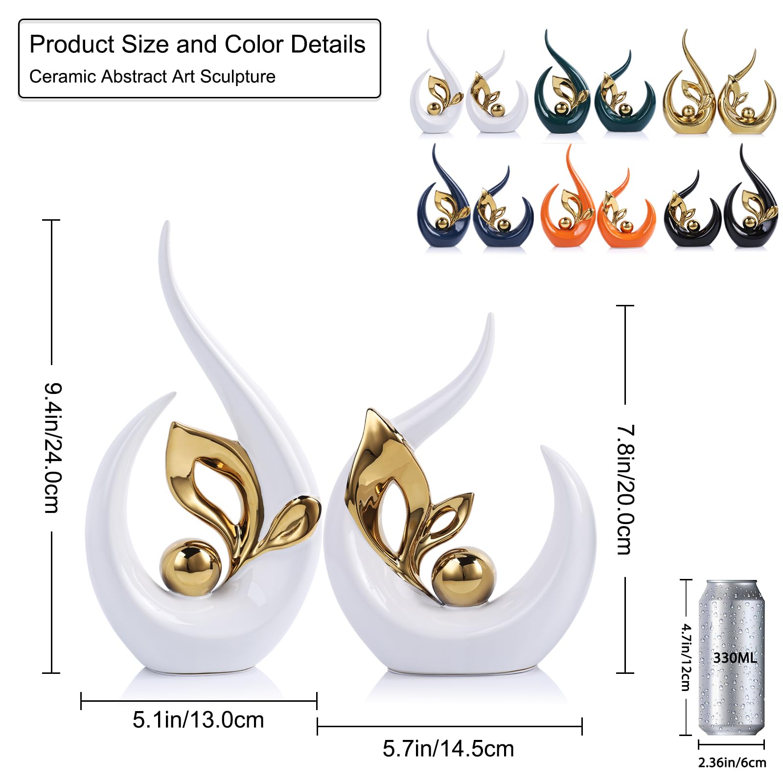 LCCCK Weißgold,abstrakte Skulpturen,Heimdekoration,Keramikkunststatue,coole Sachen zum Aufstellen auf Regalen und TV-Stand-Dekor,Gold-Akzent,Unterhaltungszentrum-Dekor,ideale Kamin,Couchtisch,