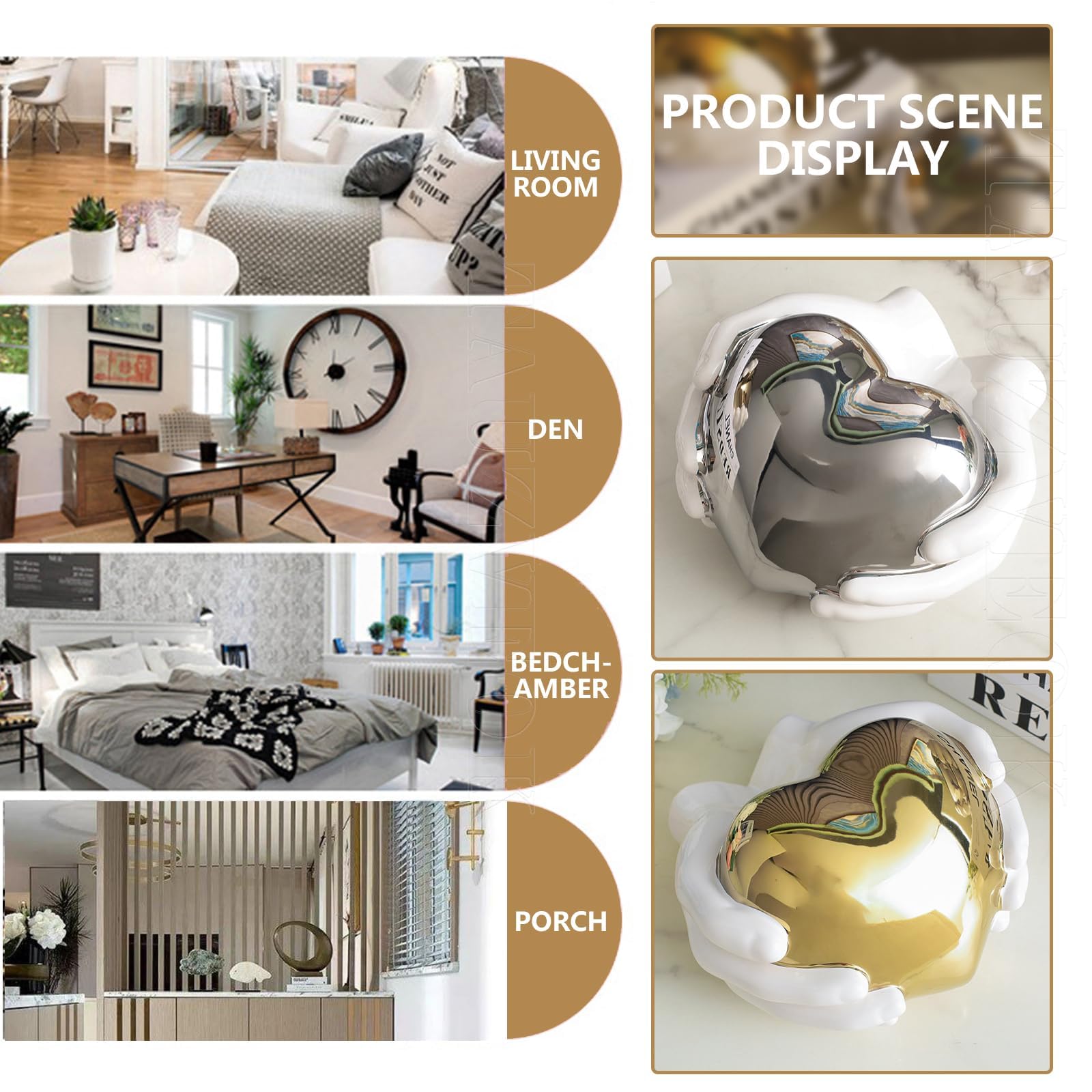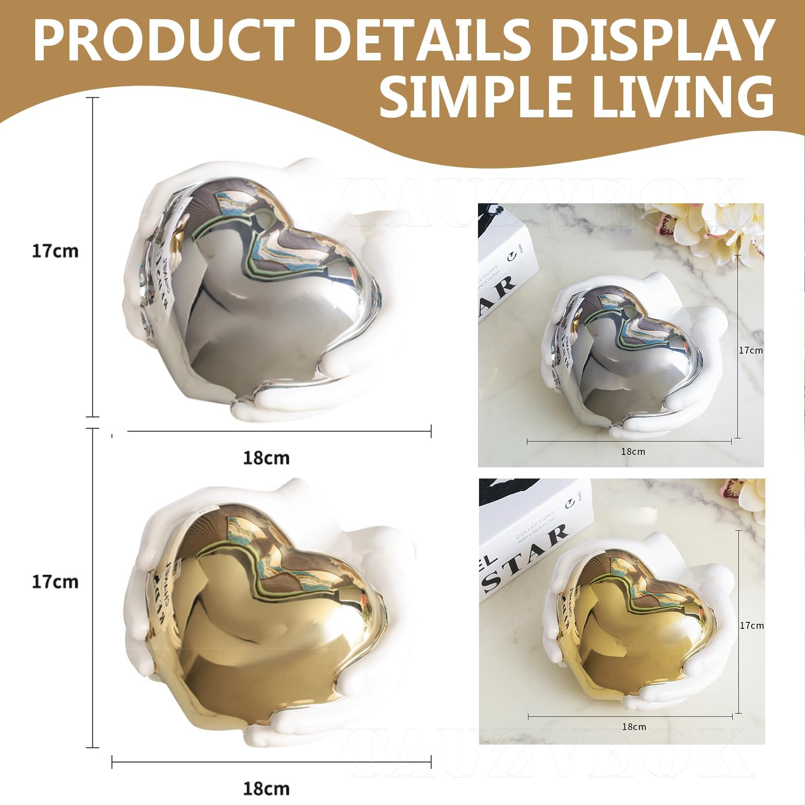 Silber Herz Skulptur aus Keramik - Moderne abstrakte Kunst Dekofigur für Wohnzimmer, Schlafzimmer, Büro - Geschenk der Liebe(Heart-Silver)