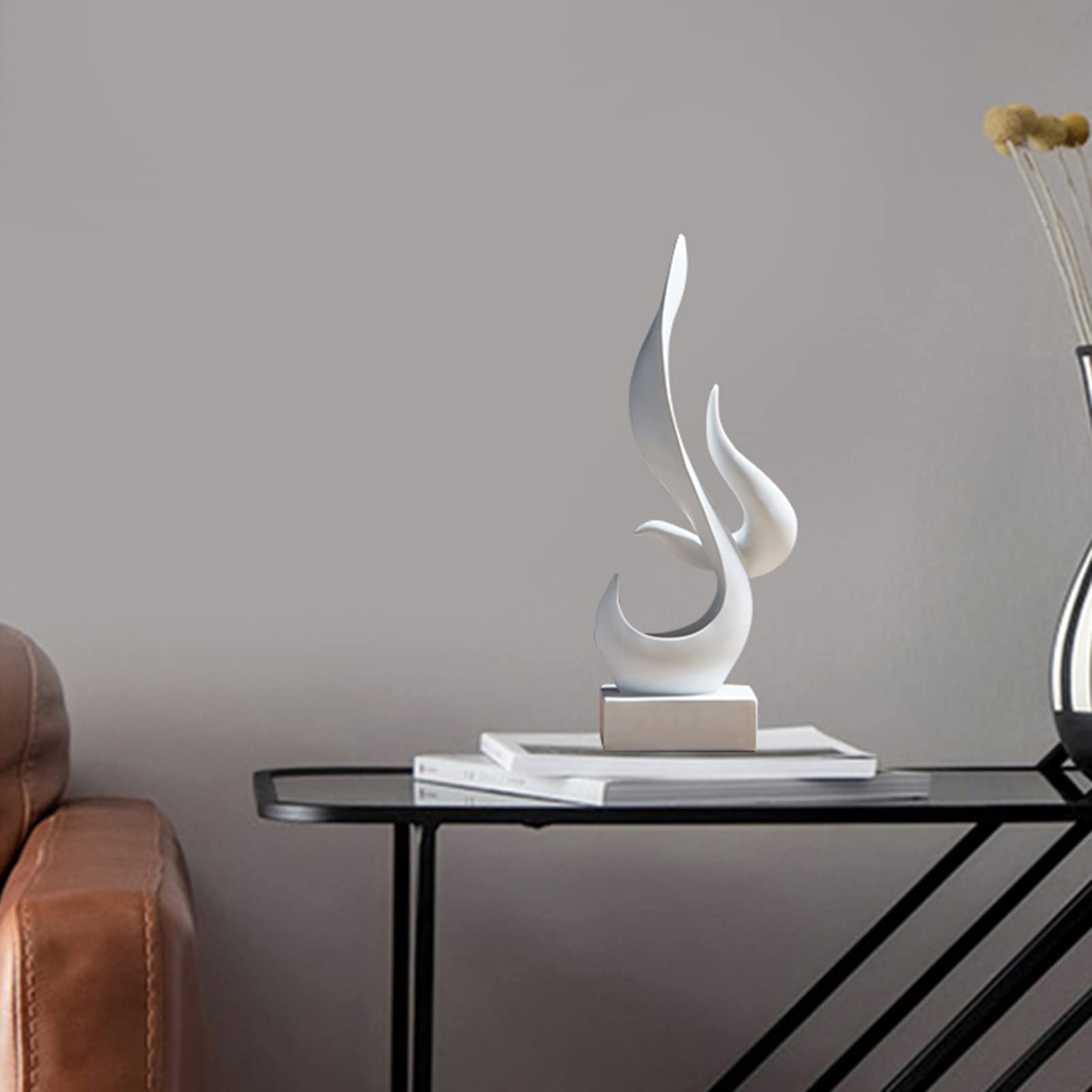 Uziqueif Skulpturen Deko Weiß, Modern Abstrakte Deko Weiße Flamme Art Skulptur, Deko Für Schlafzimmer, Fensterbank Wohnzimmer Wohnungs Büro Weinschrank Dekoration, Harz, Handwerk,Weiß